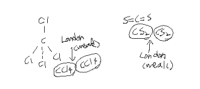 Non polar molecules like CH4, C25H52, CCl4 Are usually placed aith London Forces